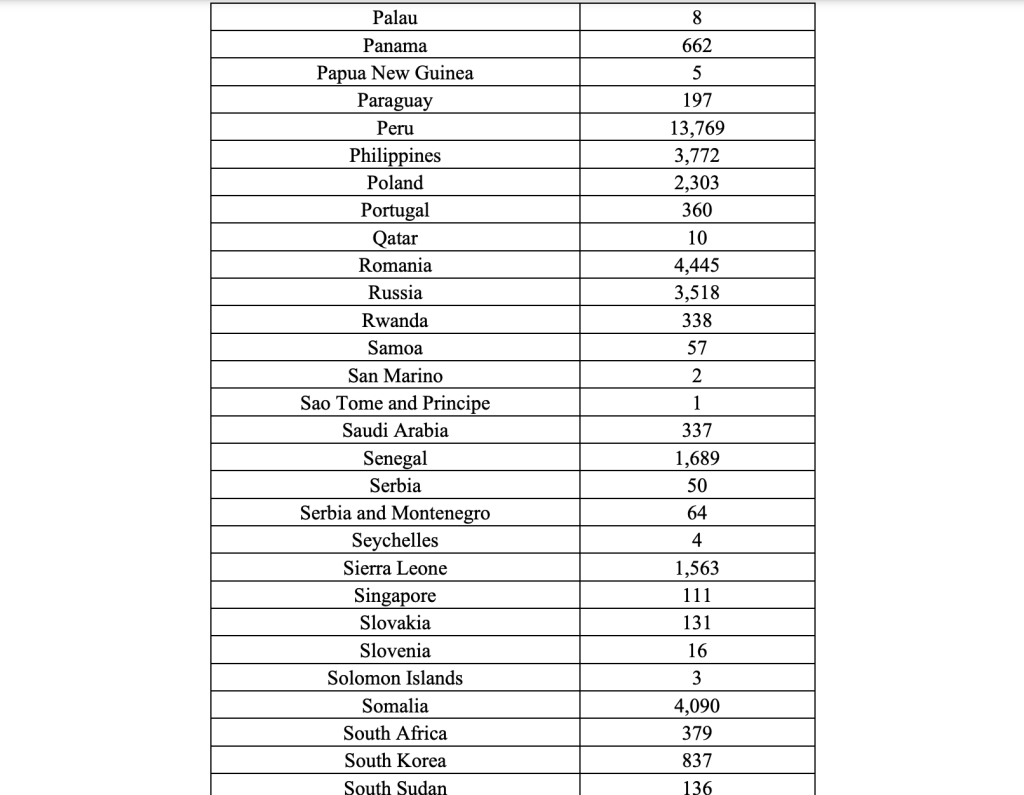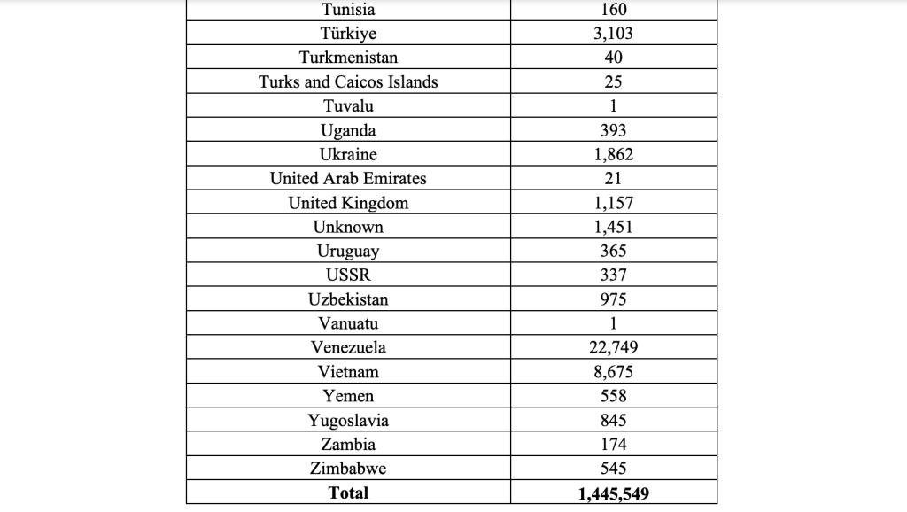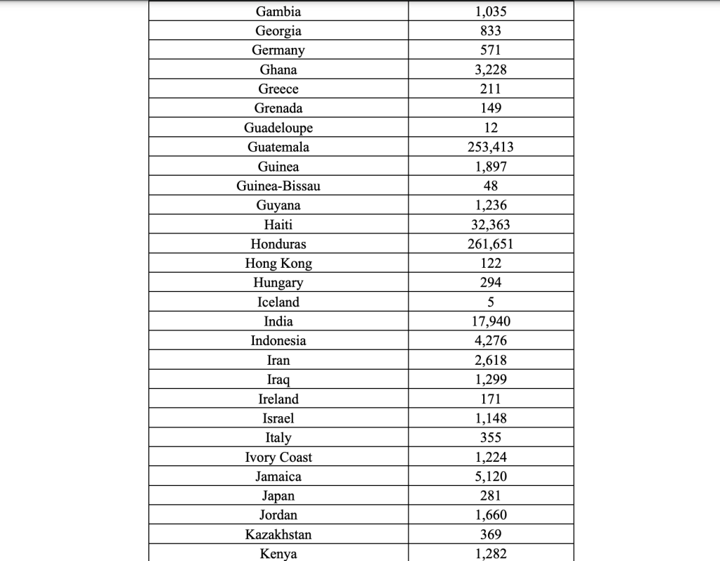 In the document titled “Noncitizens on the ICE Non-Detained Docket with Final Orders of Removal by Country of Citizenship”, Mexico and El Salvador top the list of nations facing the most deportation, with 252,044 and 203,822, respectively.