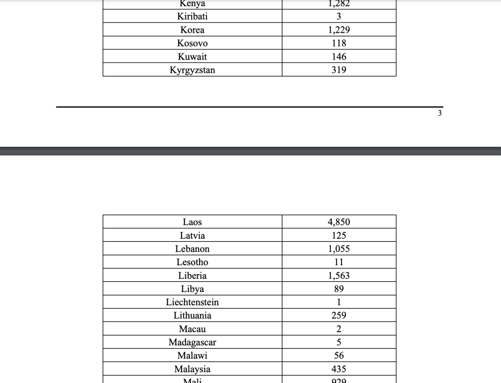 In a document compiled by US Immigration and Customs Enforcement, Enforcement and Removal Operations and sighted by our correspondent on Tuesday, the agency revealed the data is broken down by nationality and number of people faced with deportation.