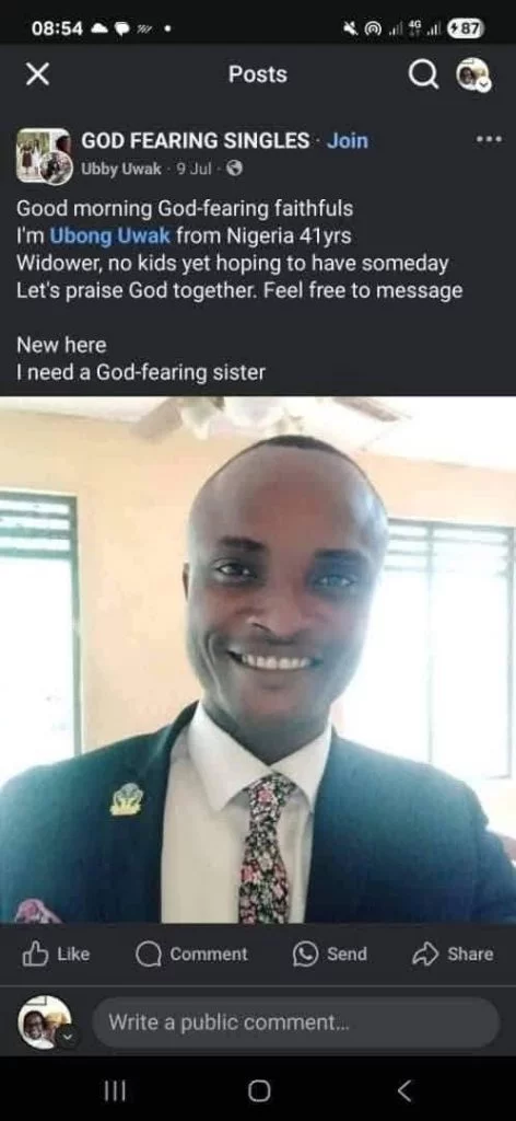 Left without family backing and facing systemic resistance, the group of friends quietly pulled out, leaving the suspect in the hands of a justice system that soon caved. Ubong was released. Not long after walking free, he was seen actively seeking a new wife online—barely weeks after his late wife’s burial and without ever being cleared by a court of law.
