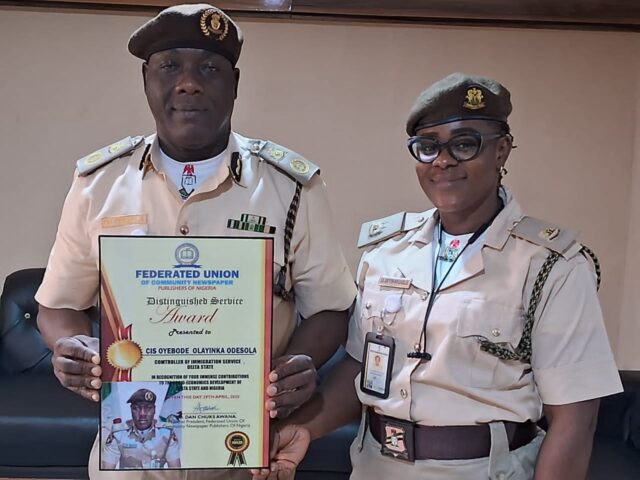 In his remarks after receiving the prestigious award in his office at the Nigeria Immigration Service Delta State Command Headquarters, CIS Odesola thanked the Union for recognising the contributions of the Command to socioeconomic development of the nation.