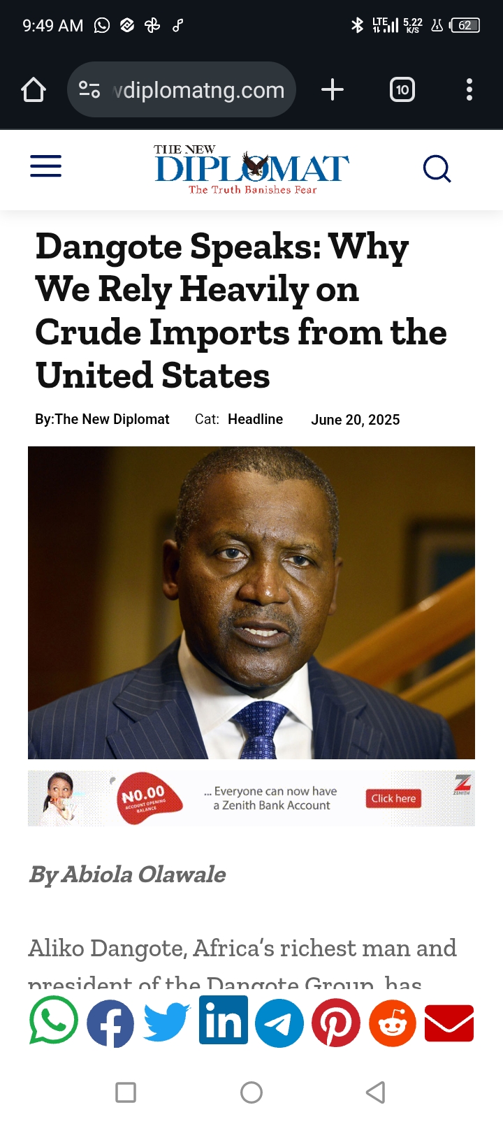 Dangote Speaks: Why We Rely Heavily on Crude Imports from the United States.