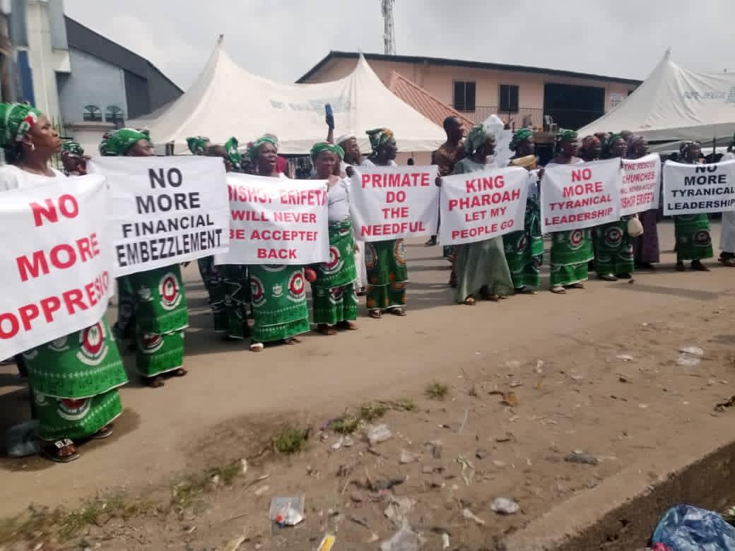 Protesting Women during the service were seen carrying placards bearing the inscriptions, ( No to embezzlement of our funds, We do not want Erifeta back Again, Enough is Enough to Under Development in Sapele Diocese, Erifeta Go Away, we Do not Need You Again. Primate, translate Erifeta to Other Areas etc.)