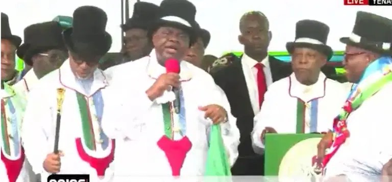 The APC National Chairman, Nentawe Yilwatda, urged Governor Diri to deliver Bayelsa State to President Bola Tinubu in the 2027 general election, saying, “Take this as a symbol of strength, symbol of unity, unite our party, make it stronger and bring all the votes