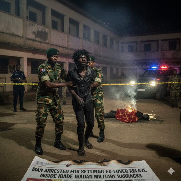 The Oyo State Police Command has arrested a man, identified as Lawal Faruq, for allegedly setting his former lover, Omolola Hassan, ablaze within a military barracks in Ibadan.