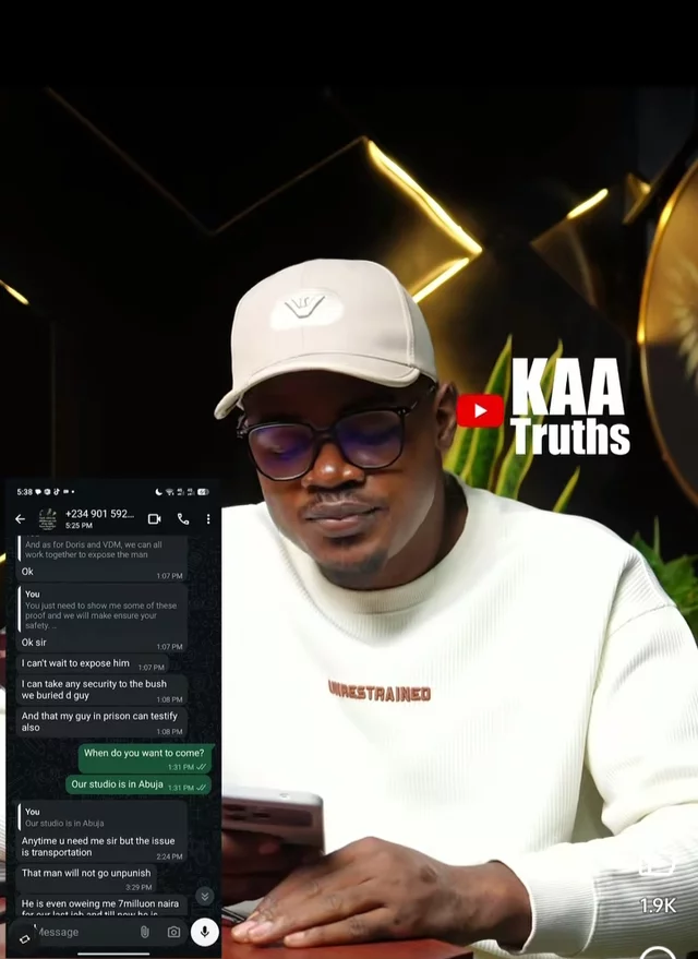 In the video, KAA shared screenshots of WhatsApp chats and played voice notes allegedly sent to him by a man who claimed to have carried out criminal acts on behalf of Pastor Chris Okafor, including killing people.