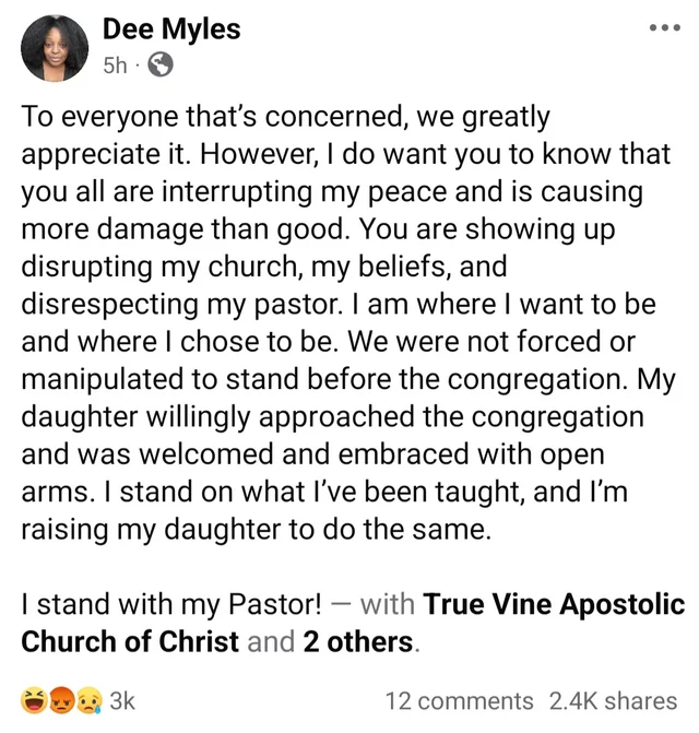 A mother has come out to speak after her daughter was forced to apologize in front of an entire congregation for becoming pregnant outside of marriage.