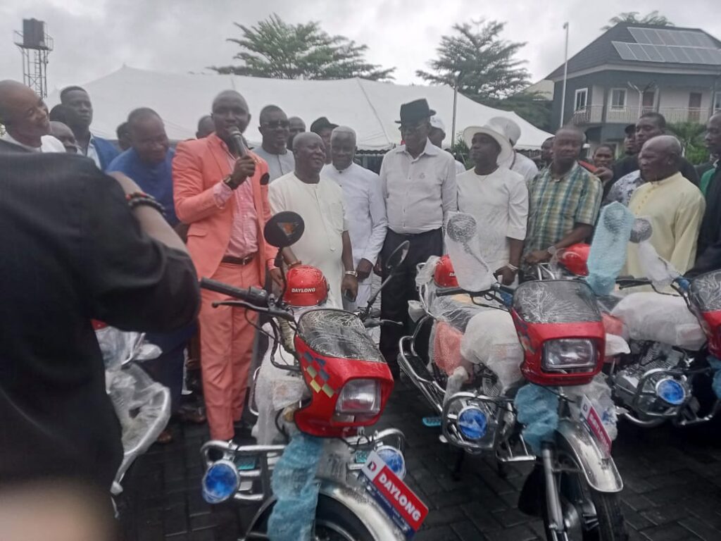 Chief Paulinus Akpeki, the Ugo of Okpe Kingdom who presented Chief Nani's motorcycles to the beneficiaries, applaudded the DESOPADEC Boss on his good will to the party leaders in Jesse.