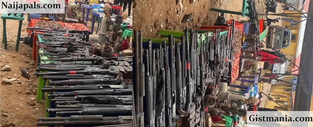 ‎In a press release issued on Sunday, July 14, by the command’s spokesperson, DSP Henry Okoye, authorities confirmed the recovery of a staggering cache of weapons, including 14 AK-47 rifles, 20 pump-action guns, two general-purpose machine guns, and four locally fabricated rocket launchers. Explosives, live ammunition, and criminal charms were also seized.