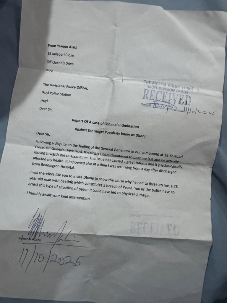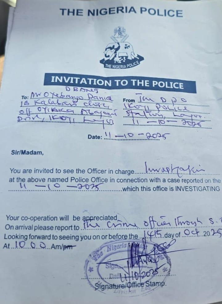 A copy of the invitation letter was made available to our reporter on Thursday night and he was expected to make himself available for interrogation at the Ikoyi Divisional Police Station on or before 14th October, 2025. It was however alleged that D’Banj did not attach importance to the invitation letter as he has failed to show up at the police station as requested.
