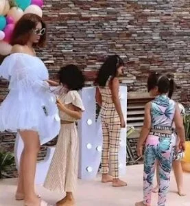 “So a lot of you have been asking me to reveal the identity of the father of my kids. Today I have a surprise for you. Yes, you guessed right. I want to reveal to you the man who gave me four adorable queens.” Nadia Buari said.